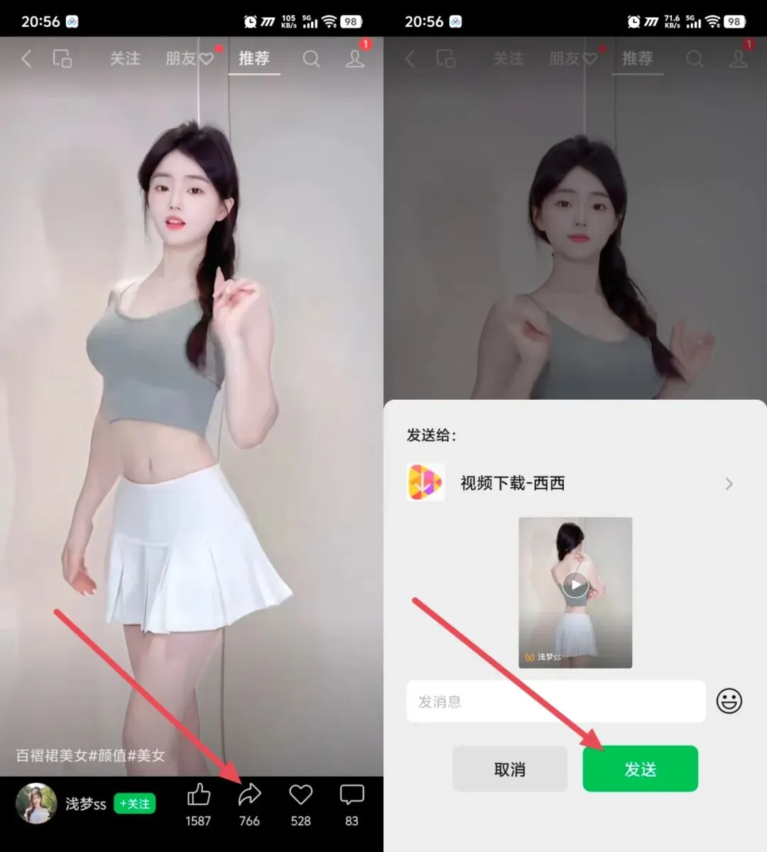第二步:转发视频→一键提取下载