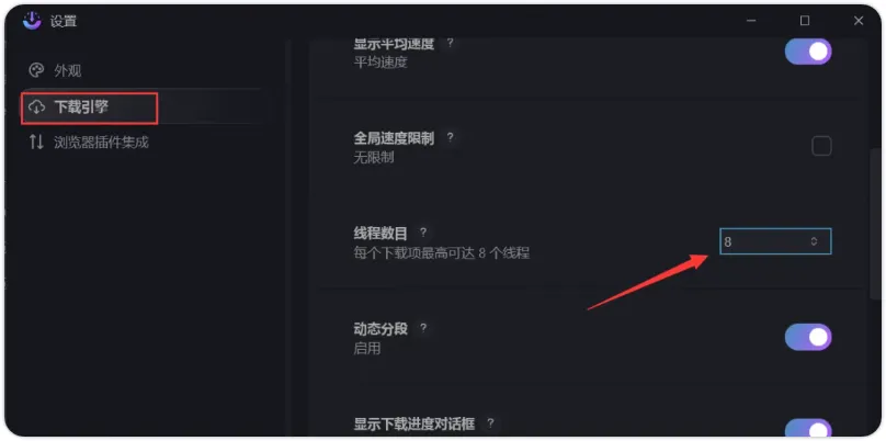 多线程加速,自由掌控:你可以手动设置每个下载任务的线程数,线程越多,下载速度通常越快,完全由你掌控。