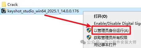 2.点击打开刚才解压好的文件夹,点击选中【keyshot_studio_win64...】,鼠标右键选择【以管理员身份运行】
