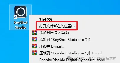 11.返回电脑桌面上找到刚才安装好的【KeyShot】图标,选中并鼠标右键点击【打开文件所在位置】