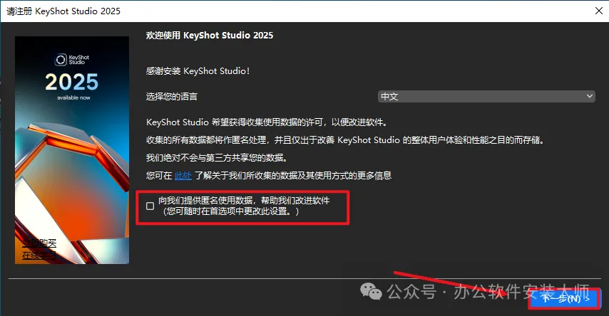 18.取消勾选【向我们提供匿名使用数据...】,然后点击【下一步】