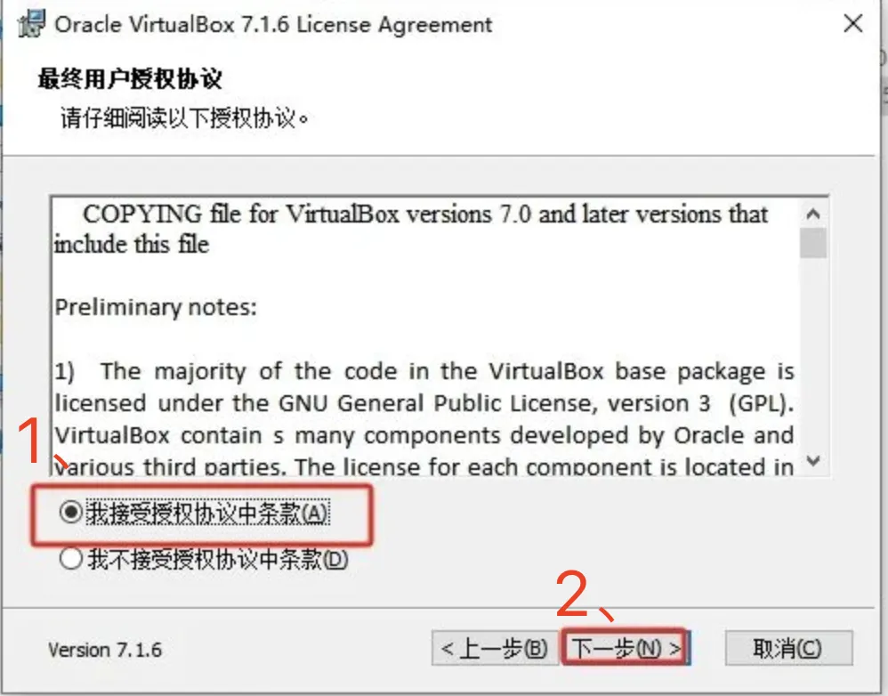 第4步:许可协议接受勾选,然后下一步