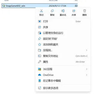 1、安装包下载后,鼠标右键点击【SnapGene】然后选择【解压到当前文件夹】位置;全部解压出来之后,鼠标右键点击【SnapGene602_win】以管理员身份运行打开