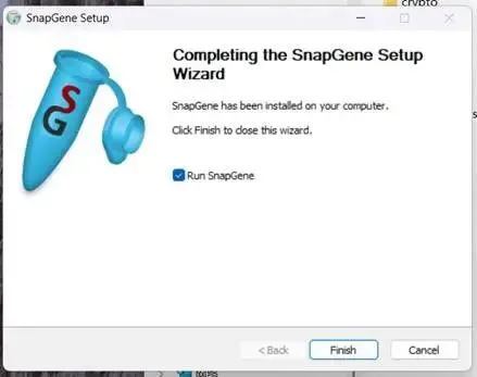 6、勾选【Run SnapGene】,然后点击【Finish】打开软件
