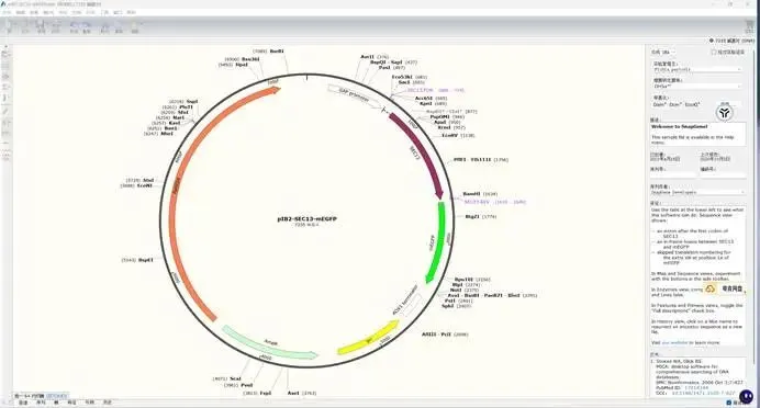SnapGene是一款专业且优秀的分子生物学软件,在相关领域应用广泛。它提供直观界面,可轻松创建、浏览和编辑DNA、RNA和蛋白质序列。通过高度优化的可视化工具,能快速设计和修改复杂分子结构,如创建和浏览带有丰富注释的质粒图,扫描大型DNA序列。支持ORF预测、启动子和终止子识别、限制酶位点分析等。可自动注释常见特性,也能手动注释异常特性,帮助用户深入了解分子序列特性和功能,指导实验设计和数据解释。提供全面的克隆和构建工具,支持基因组编辑、重组DNA、基因插入和删除等。能模拟常见克隆和PCR方法,自动设计引物,确保主要分子克隆技术的快速准确构建设计,帮助用户验证项目设计并防止错误。可存储、搜索、共享并组织序列、文件和图谱,与多种存储方式协同工作。能读取和导出多种常用文件格式的序列、注释和其他元数据,还可通过SnapGene Viewer共享数据,方便数据交换和协作。 在基因组学研究应用领域:帮助研究人员快速处理和分析DNA序列数据,如快速识别基因组中的功能区域,进行序列比对和变异分析。 在蛋白质组学研究应用领域:提供强大的蛋白质序列分析功能,支持蛋白质结构预测和功能注释,可快速识别蛋白质序列中的关键特征和功能域。 在生物工程应用领域:其克隆设计和序列编辑功能为研究人员提供强大支持,可快速设计和优化克隆方案,进行虚拟凝胶模拟,并生成高质量的实验方案。 在教学与培训应用领中:直观的界面和灵活的功能模块,使学生能够快速掌握分子生物学的基本操作和分析方法。教师可利用其批量注释和文件管理功能,创建教学项目,让学生在实践中学习。👉更多资源可访问资源库获取: