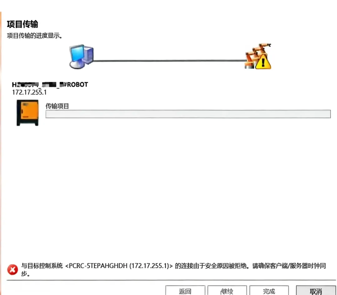 这是由于你现场KUKA控制器系统时间与你的电脑(Workviusal)系统时间相差太多了,曾经有个兄弟好像测试过告诉我,好像是两者相差3分钟之内都可以正常下载项目,也许我记得不准哈😅
