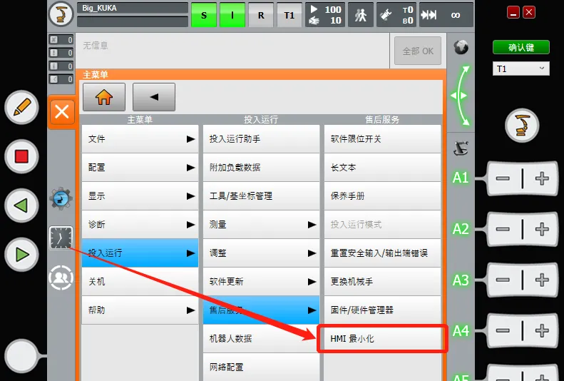 菜单--投入运行--售后服务--HMI最小化进入windows界面