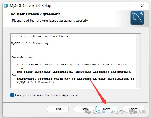 4.勾选上【I accept the terms...】,然后点击【Next】按钮