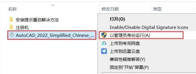 这是因为之前安装过其他版本CAD注册表没有清理干净,点击安装包里的【安装提示重启解决方法】文件夹,里面有处理教程。
