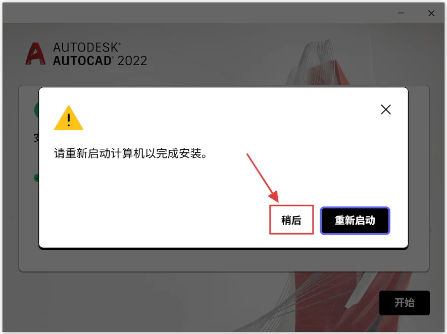 (正在等待操作系统重新启动。请重新启动计算机以安装Autodesk....)