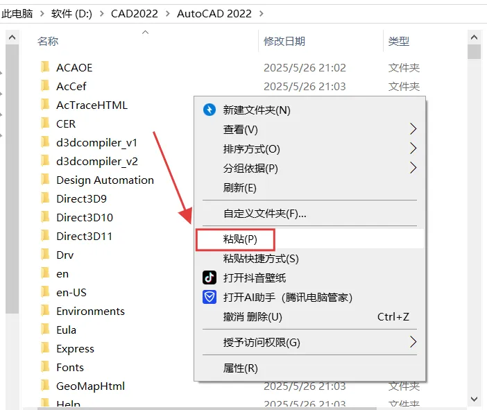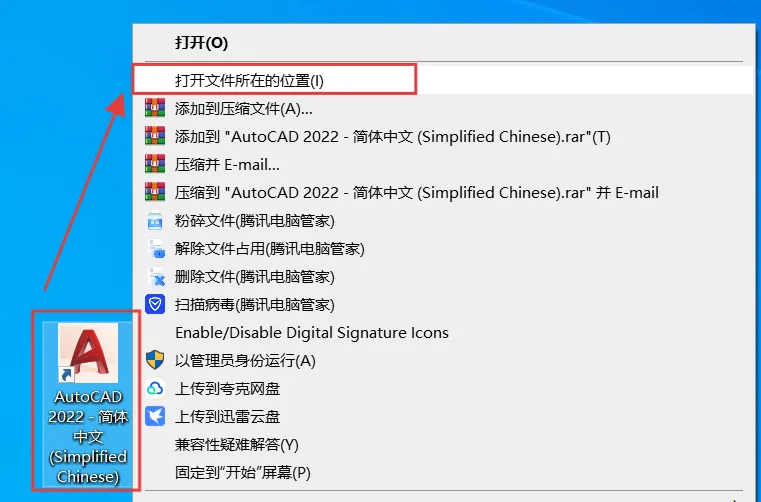 [温馨提示]:我们提供用户下载的所有内容均来自互联网。仅限技术交流,不得用作商业。注意!!!开始解压安装前一定退出杀毒软件 (不然会误删激活工具)(电脑自带和第三方等杀毒软件、防火墙、实时保护等会拦截删除激活文件,安装完再打开!)1.把下载好的压缩包解压出来,没有解压软件可以安装一个再操作。3.选中【AuotoCAD_2022】程序,鼠标右键点击【以管理员身份运行】。4.点击【确定】。(注:解压安装包默认在C盘,如果C盘容量不够可点击更改到其他路径,软件安装完成后可删除此文件夹)7.点击【...】更改安装路径。(C盘空间足够,也可以默认安装)8.可以在D盘新建一个【CAD2022】文件夹,选中后点击【选择文件夹】。13.安装完成,点击【X】关闭窗口。(不要点开始)1.返回解压好的文件,找到【注册机】文件夹点击打开。3.回到电脑桌面选中【CAD2022图标】鼠标右键点击【打开文件所在位置】。5.选中粘贴过来的【注册机】鼠标右键点击【以管理员身份运行】。9.如果有这个弹窗点击【始终将DW文件与AutoCAD重新关联】,没有就不用管。安装常见问题: