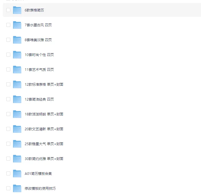 5份简历模板单页版(小红书置顶笔记版本,需要一定编辑技巧,含较多图片文本框)