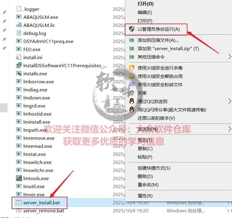 9.打开刚刚粘贴过来的License文件夹,以管理员身份运行server_install.bat文件;
