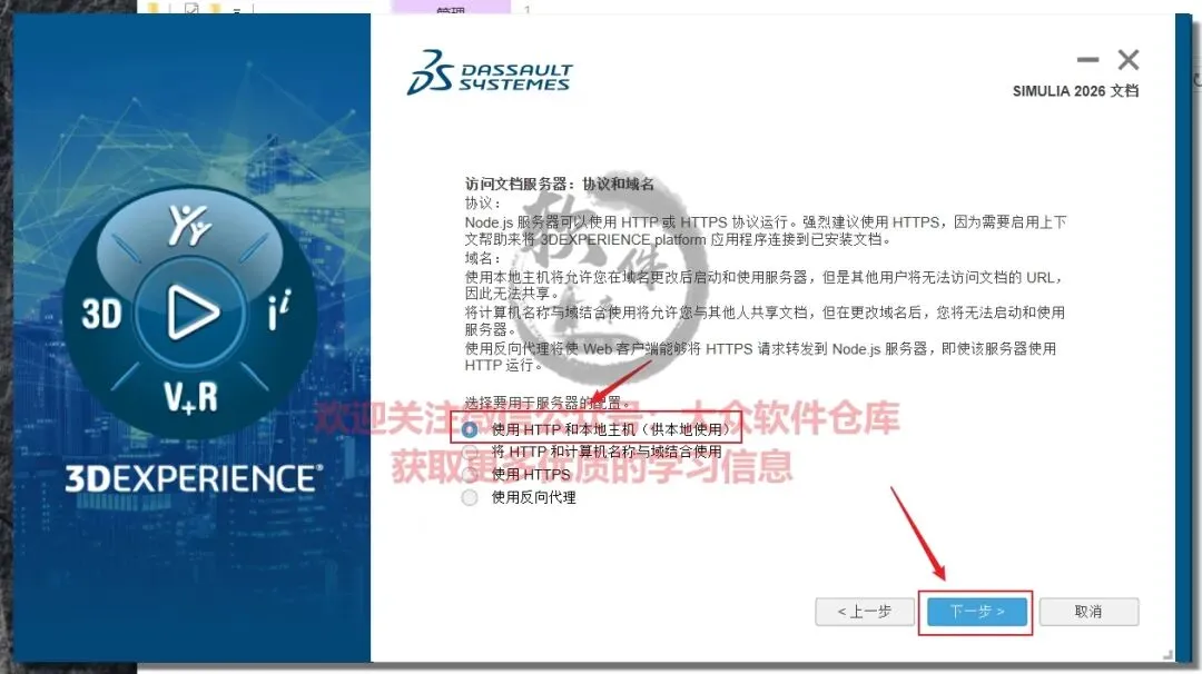 22.选择第一项使用HTTP和本地主机,点击下一步;