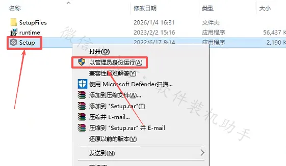 9.返回到【Setup】文件夹中,鼠标右键【Setup】安装程序,点击【以管理员身份运行】。