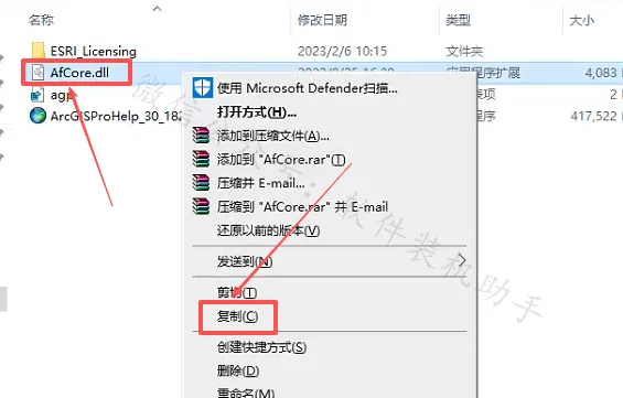 40.返回到【Crack】文件夹中,鼠标右键【AfCore.dll】文件,点击【复制】。