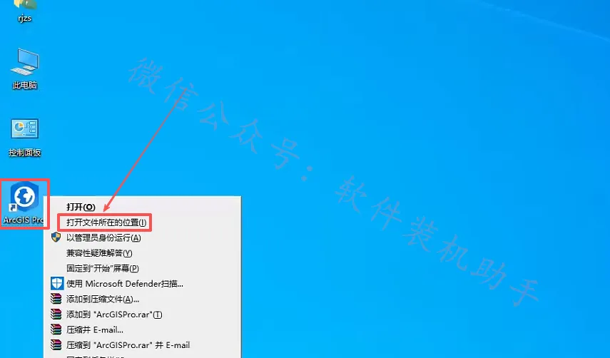 41.在桌面上找到ArcGIS软件图标,鼠标右键点击【打开文件所在的位置】。