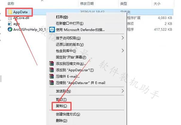 44.返回到解压的【Crack】文件夹中,鼠标右键【AppData】文件夹,点击【复制】。