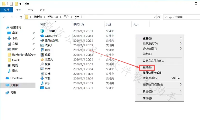 47.在打开的文件夹中,鼠标右键点击【粘贴】刚才复制的”AppData“文件夹。