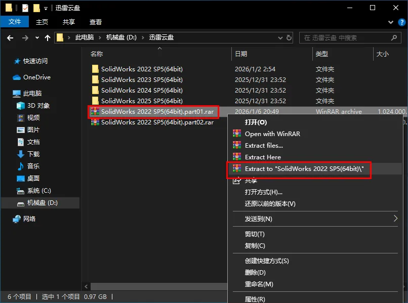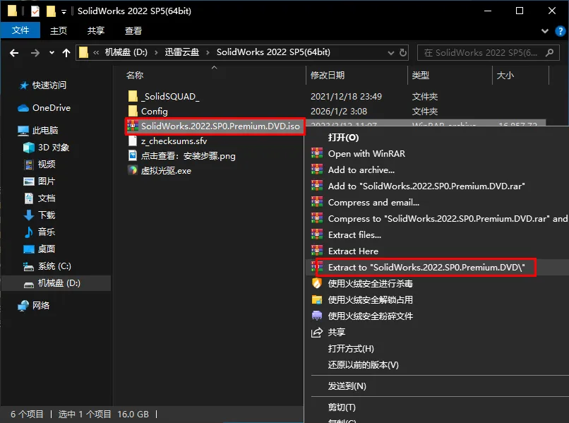 11.鼠标右击【SolidWorks.2022.SP0.Premium.DVD】压缩包(win11系统的用户先点击“显示更多选项”)选择【解压到 SolidWorks.2022.SP0.Premium.DVD】