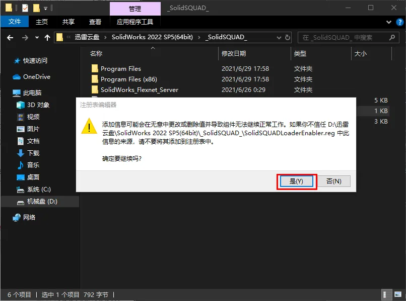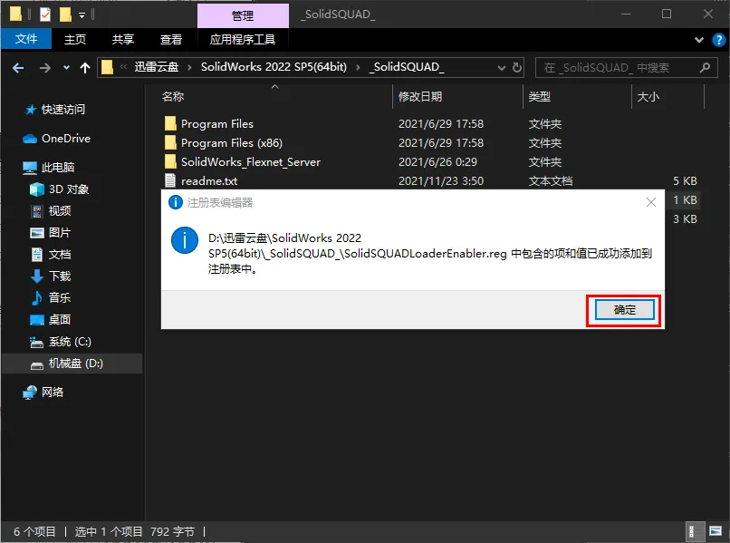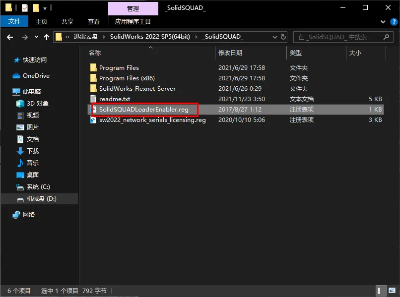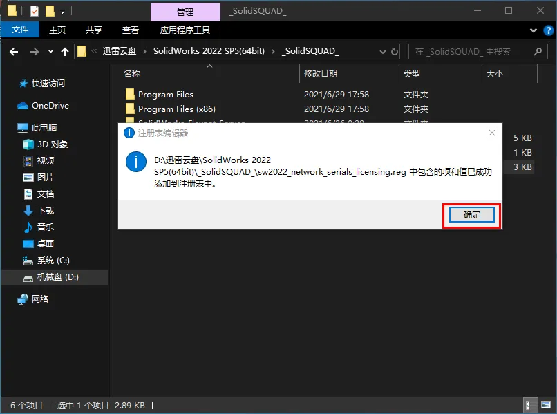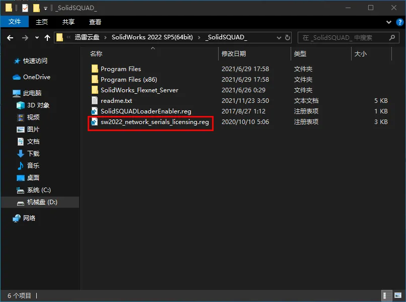 https://pan.xunlei.com/s/VOiOHmlCJ5gpq7lGYdXaVLKoA1?pwd=iy9b#1.鼠标右击【SolidWorks 2022 SP5(64bit).part01】压缩包(win11系统的用户先点击“显示更多选项”)选择【解压到 SolidWorks 2022 SP5(64bit)】2.打开解压后的文件夹,双击打开【_SolidSQUAD_】文件夹。3.双击【sw2022_network_serials_licensing】5.点击【确定】