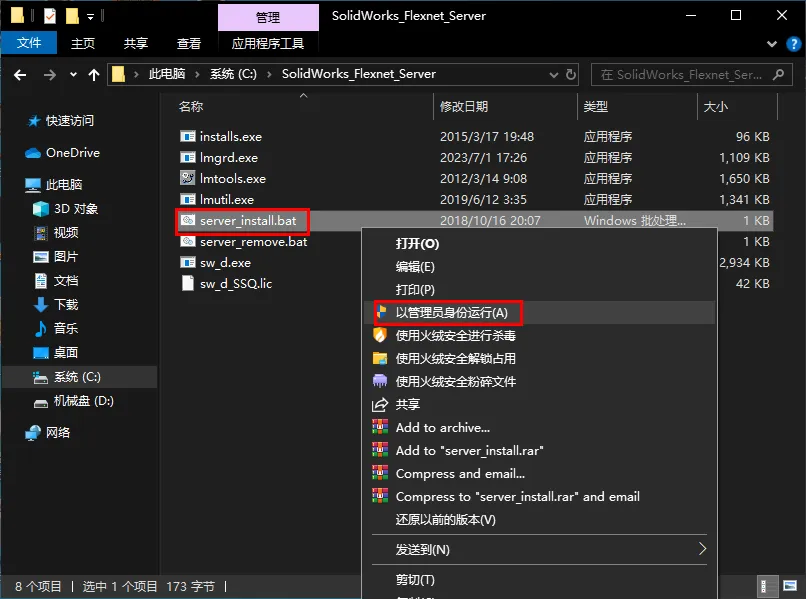 9.鼠标右击【server_install】选择【以管理员身份运行】
