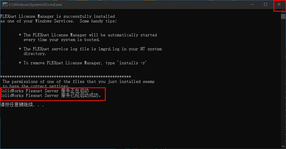 10.提示【服务已经启动成功】,点击右上角【X】退出
