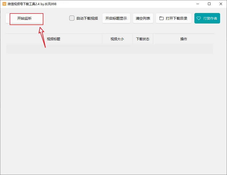获取到我给你的安装文件,双击打开即可运行。下一步,只需点击左上角的“开始监听”,这时,你的视频号只要打开,有视频在播放,软件即可监听到。