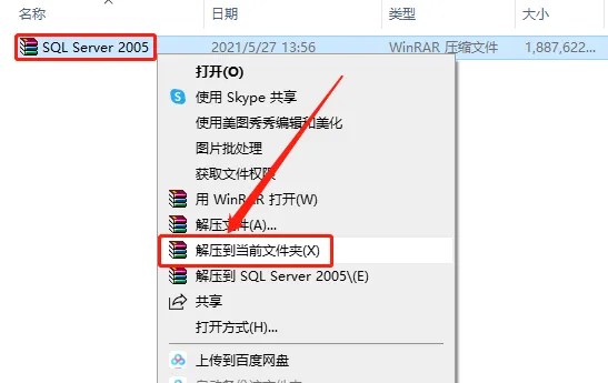 6.打开下载的SQL Server软件安装包,鼠标右击压缩包选择【解压到当前文件夹】。