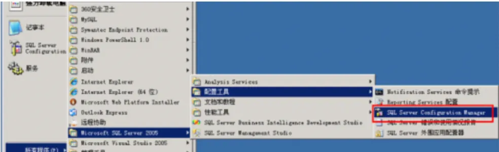 31.在桌面左下角的开始菜单中找到并打开【SQL Server Configuration Manager】。