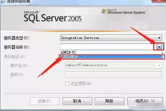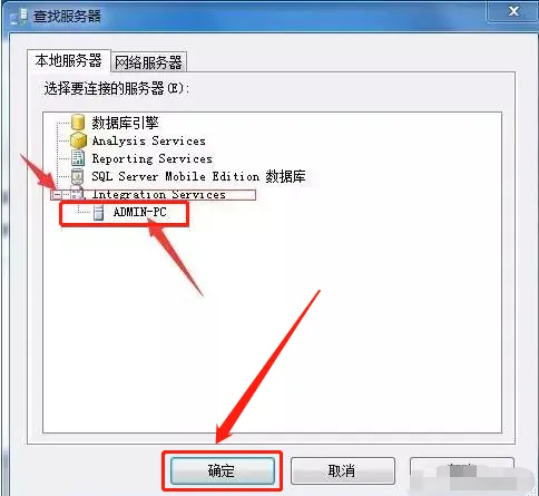 33.展开【Integration Services】,然后选中【ADMIN-PC】,点击【确定】。