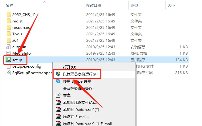 5.鼠标右击【setup】安装程序,选择【以管理员身份运行】。