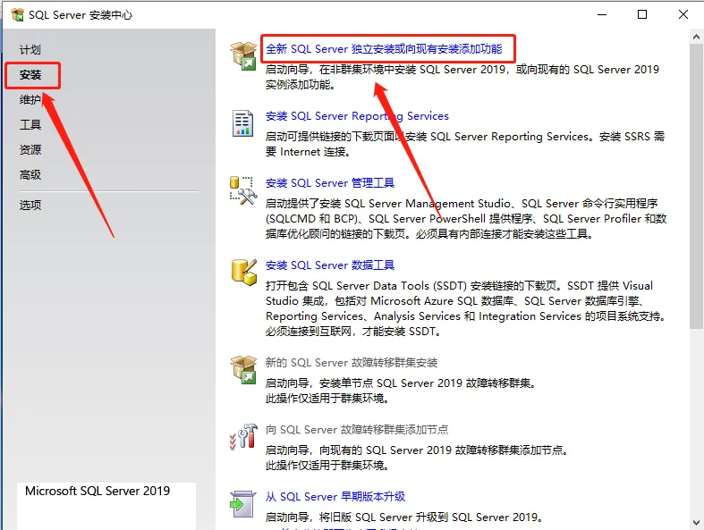 6.点击【安装】,然后点击【全新安装或向现有安装添加功能】。