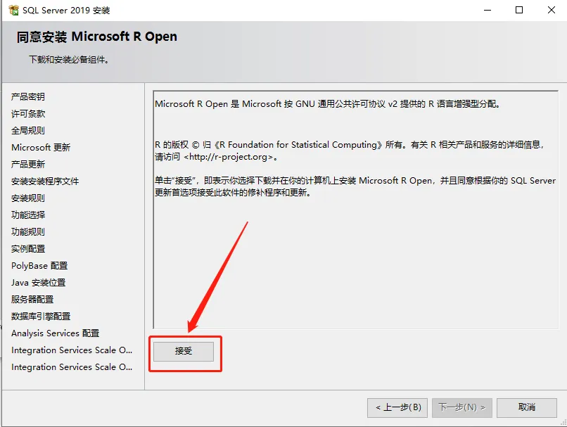 8.勾选【我接受许可条款】,然后点击【下一步】。