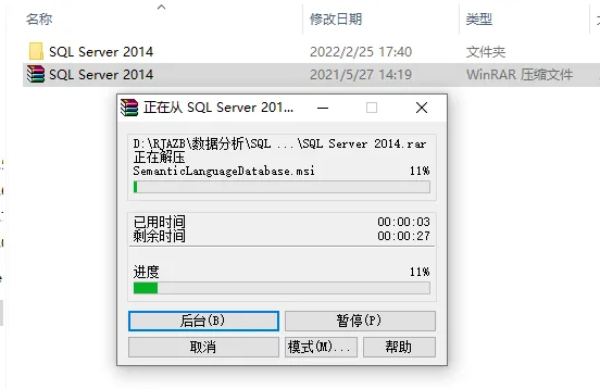 2.等待压缩包解压完成。