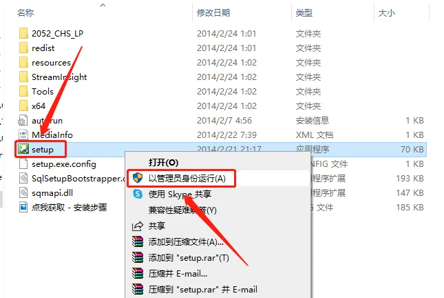 4.鼠标右击【setup】程序,选择【以管理员身份运行】。