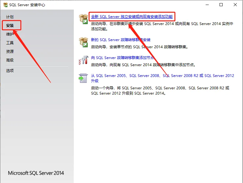 5.点击【安装】,然后点击【全新安装或向现有安装添加功能】。