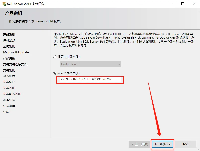 6.输入产品密钥27HMJ-GH7P9-X2TTB-WPHQC-RG79R,然后点击【下一步】。