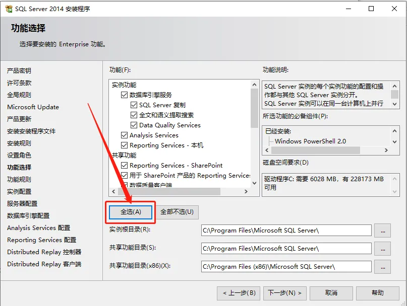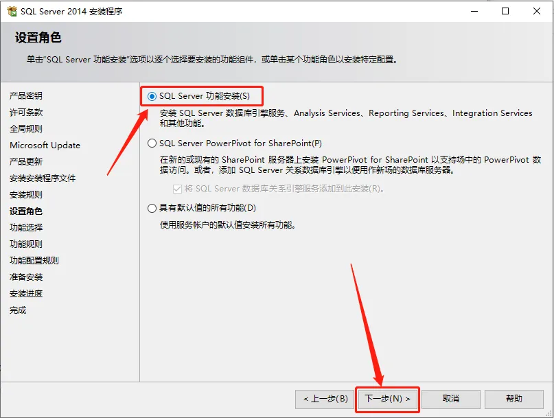 11.选择【SQL server 功能安装】,然后点击【下一步】。