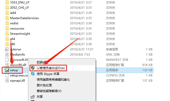 4.鼠标右击【setup】程序,选择【以管理员身份运行】。