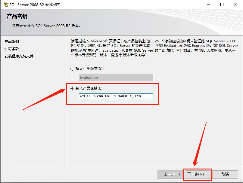 8.输入产品密钥GYF3T-H2V88-GRPPH-HWRJP-QRTYB,然后点击【下一步】。