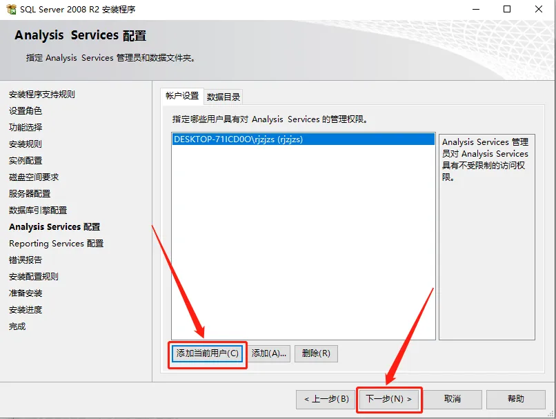 24.点击【添加当前用户】,然后点击【下一步】。