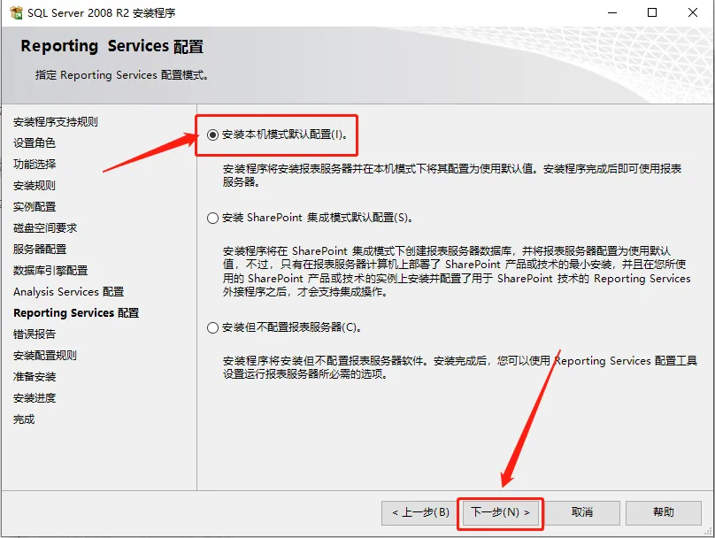 25.点击【安装本机模式默认配置】,然后点击【下一步】。