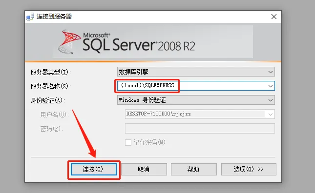 34.在服务器名称后添加\SQLEXPRESS。