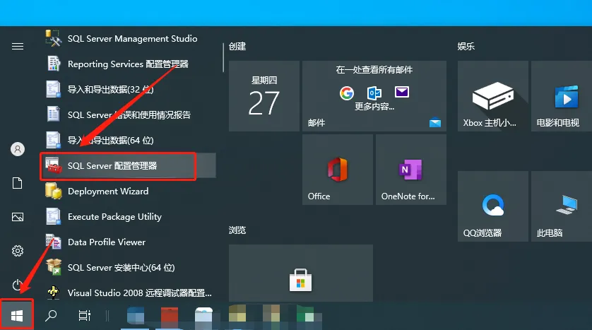 35.点击桌面左下角的开始菜单,然后找到并打开【SQL Server配置管理器】。