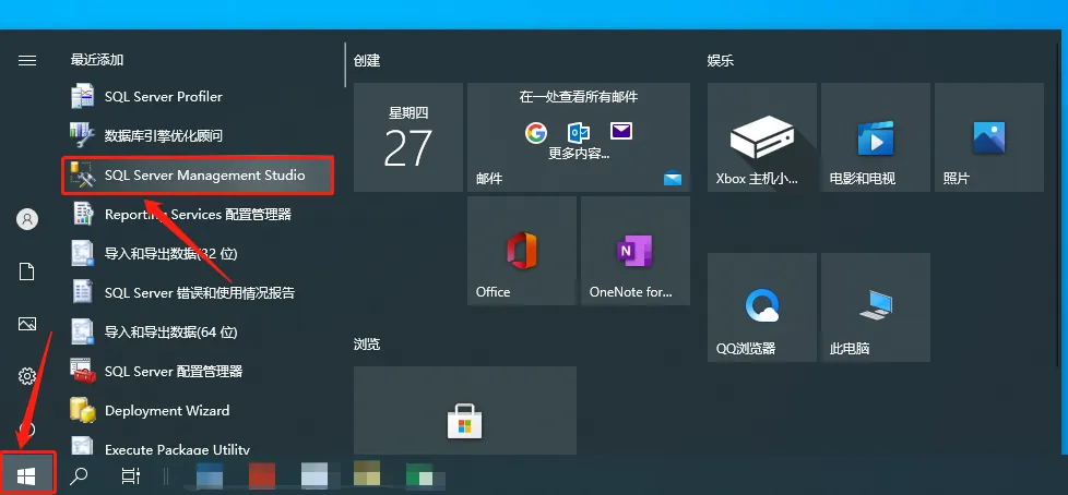31.点击桌面左下角的开始菜单,然后找到并打开【SQL Server Management Syudio】。