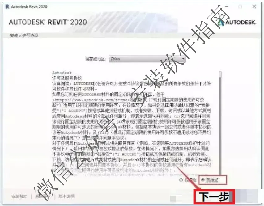 5、点我接受,然后点下一步