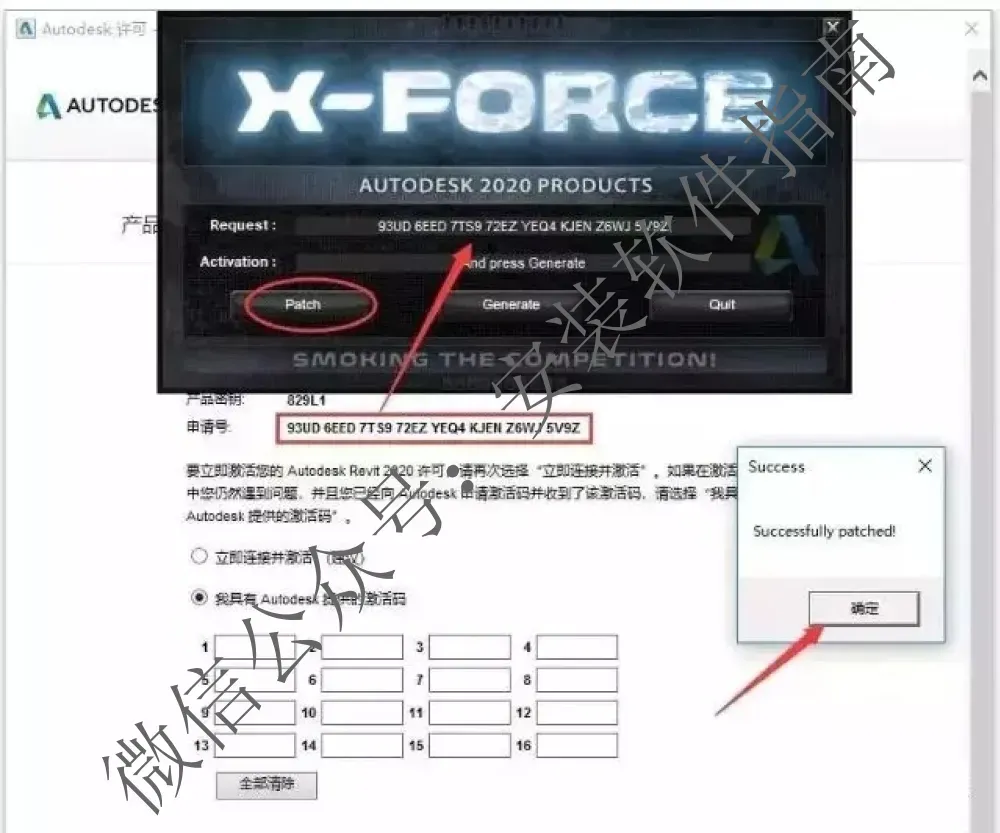16.将“申请号”复制(ctrl+c)到"Request"框内(ctrl+v),点“Patch”,在弹出的对话框点确定