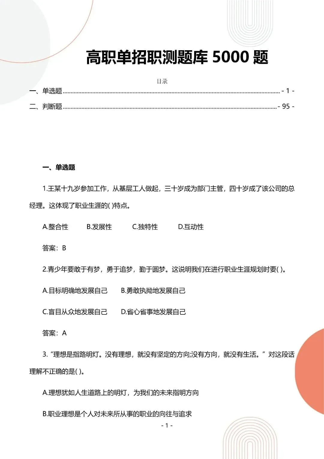 【免费下载】高职单招职测5000题,PDF可打印