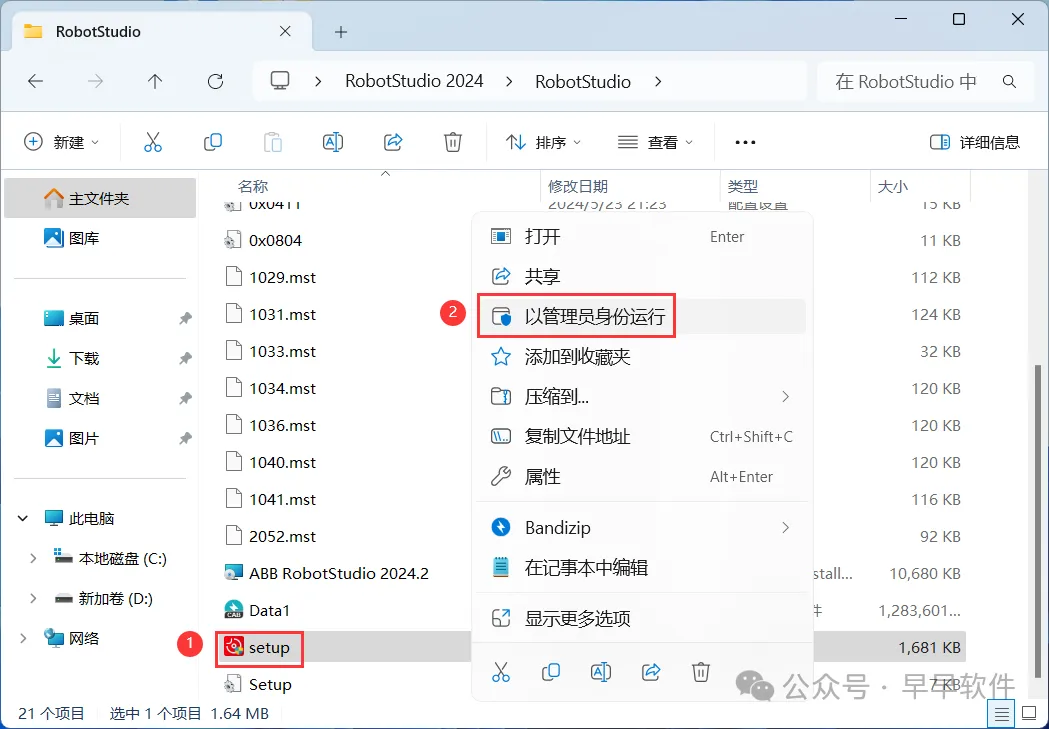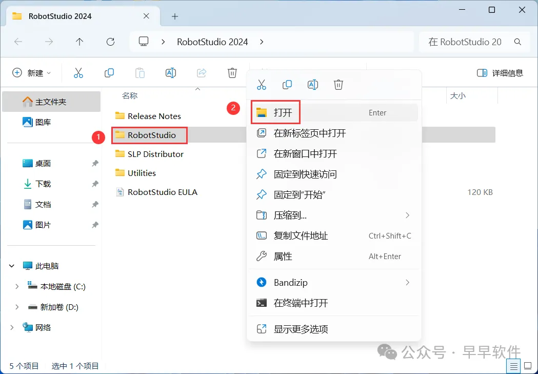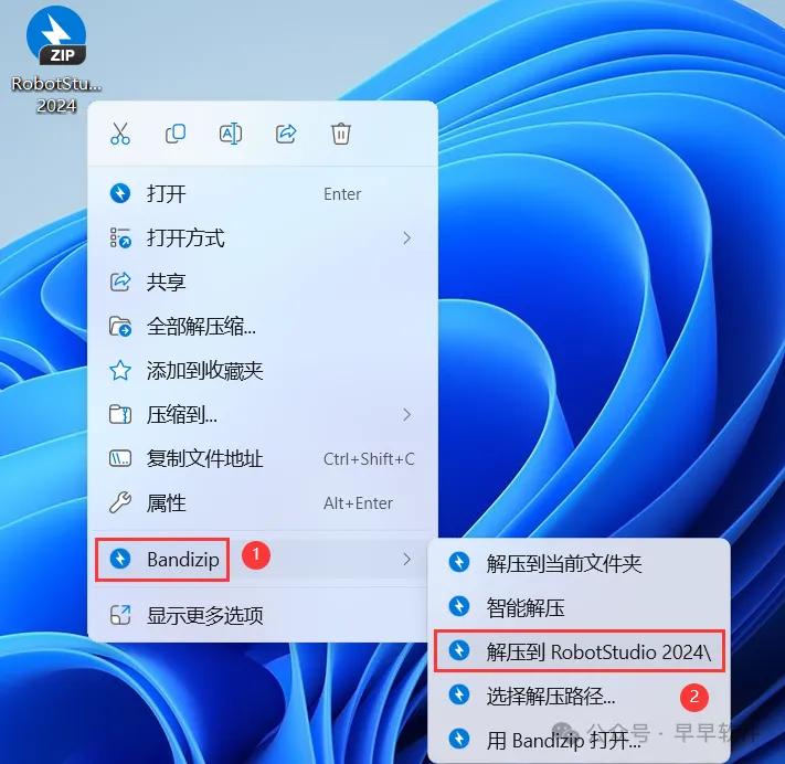 1、下载RobotStudio 2024软件安装包到电脑上,右键选择【解压到RobotStudio 2024\】
